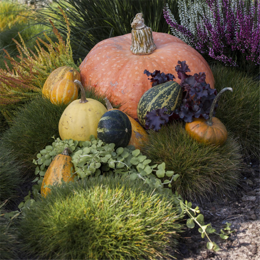 Wenn viele Herbstblüher den kühleren Temperaturen nicht mehr standhalten, beginnt die große Zeit für Zierkürbisse und Gräser. Denn sie machen auch bei Minustemperaturen richtig was her und sorgen für eine tolle Herbststimmung auf der Terrasse oder vor der Haustür.